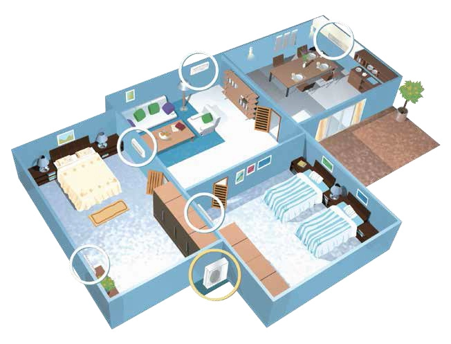 System multi to zasługa najnowocześniejszych technologii zastosowanych w nowoczesnych klimatyzatorach. M.in. sprężarka inverterowa dostosowuje swoją pracę do zapotrzebowania w danych pomieszczeniach, dzięki czemu uzyskujemy komfort w wybranych miejscach i znacząco oszczędzamy energię elektryczną. Reasumując, klimatyzacja multi split znajdzie swoje zastosowanie wszędzie tam, gdzie nie chcemy mieć kilku urządzeń zewnętrznych, ale jednocześnie chcemy zapewnić sobie komfort w kilku pomieszczeniach. Klimatyzacja w systemie multi split to również rozwiązanie przy braku możliwości montażu osobnych systemów.